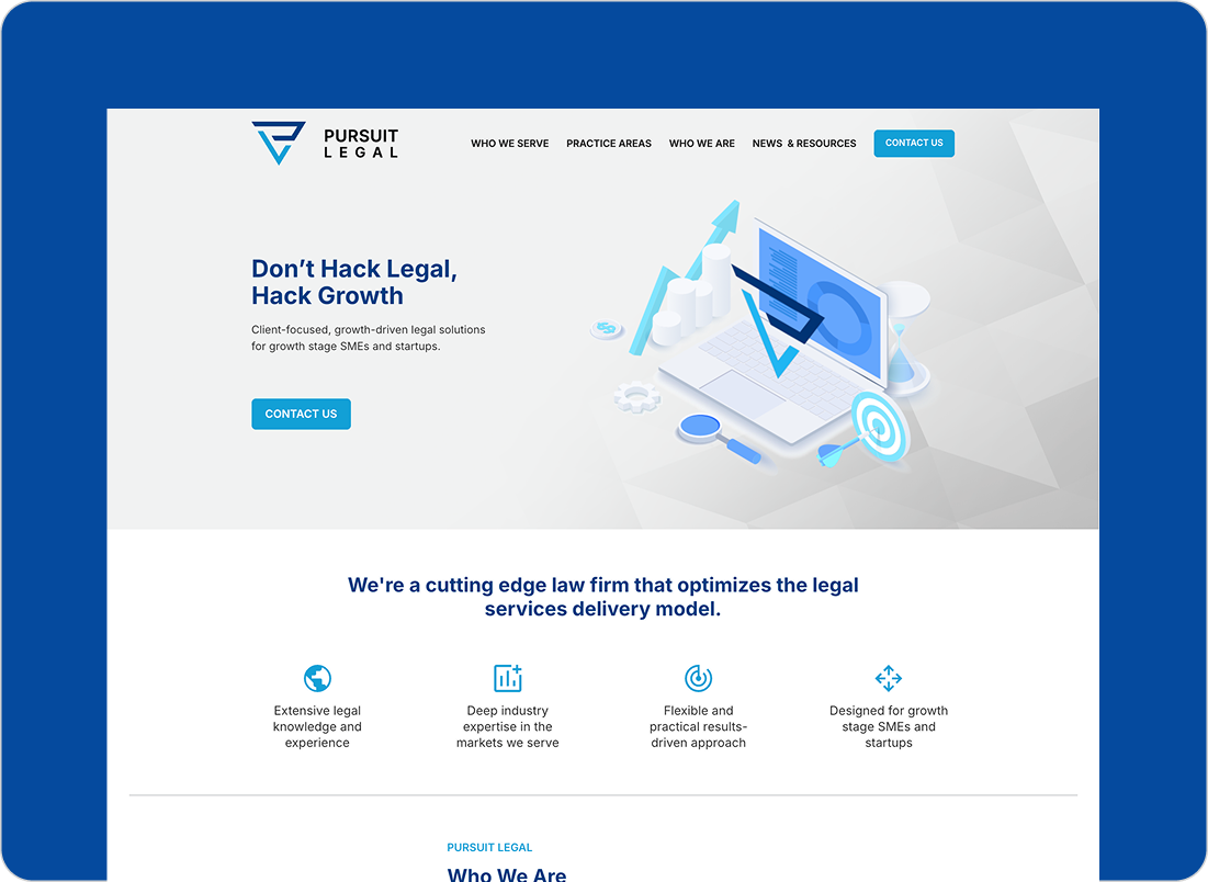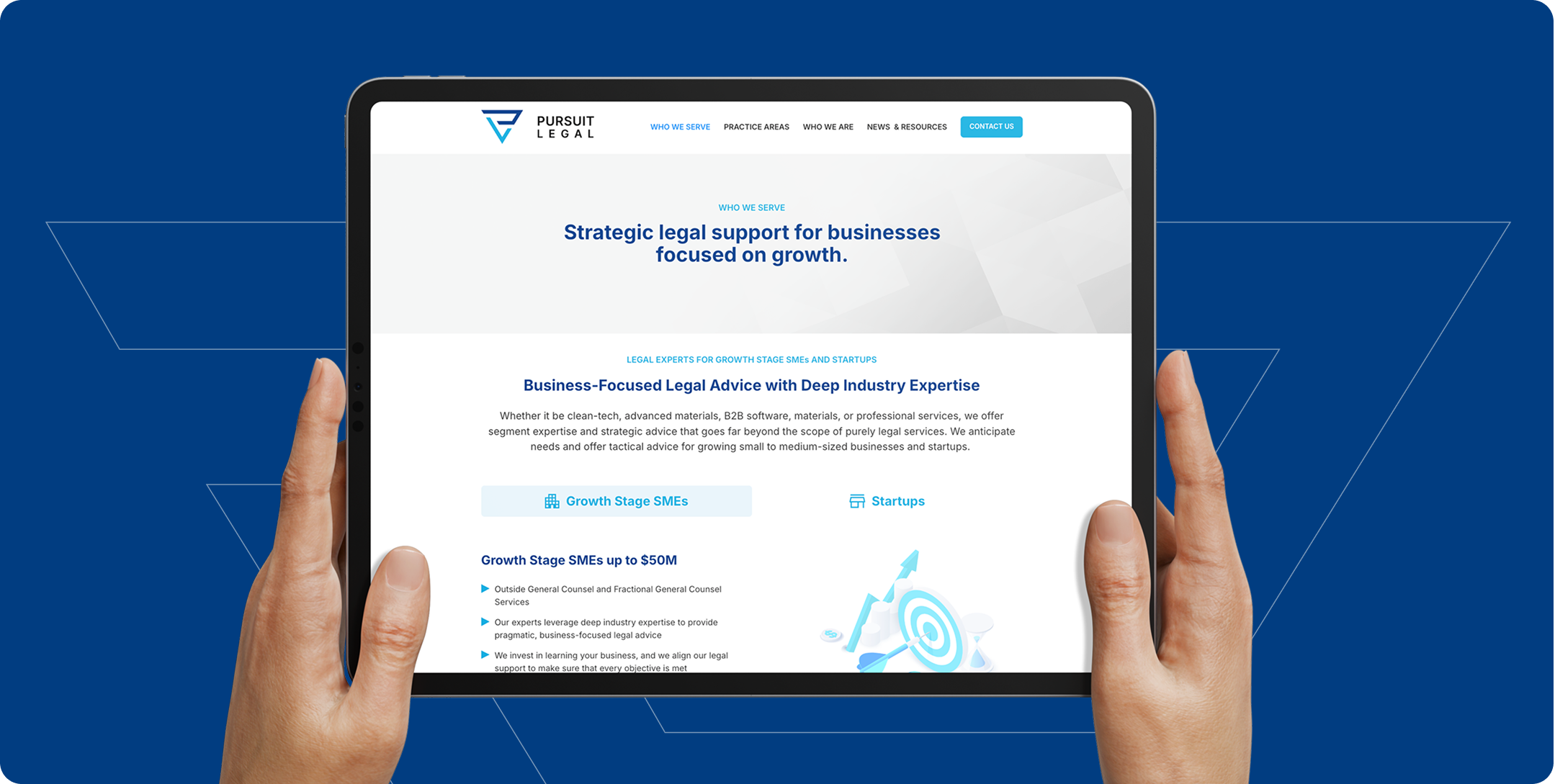 We partnered with Pursuit Legal from the ground up, delivering a complete brand and web launch: