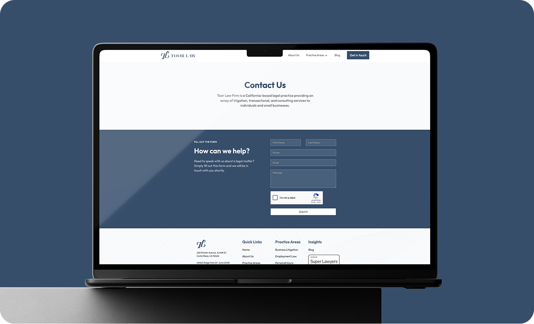 We partnered with Toor Law to deliver a complete branding and web solution: